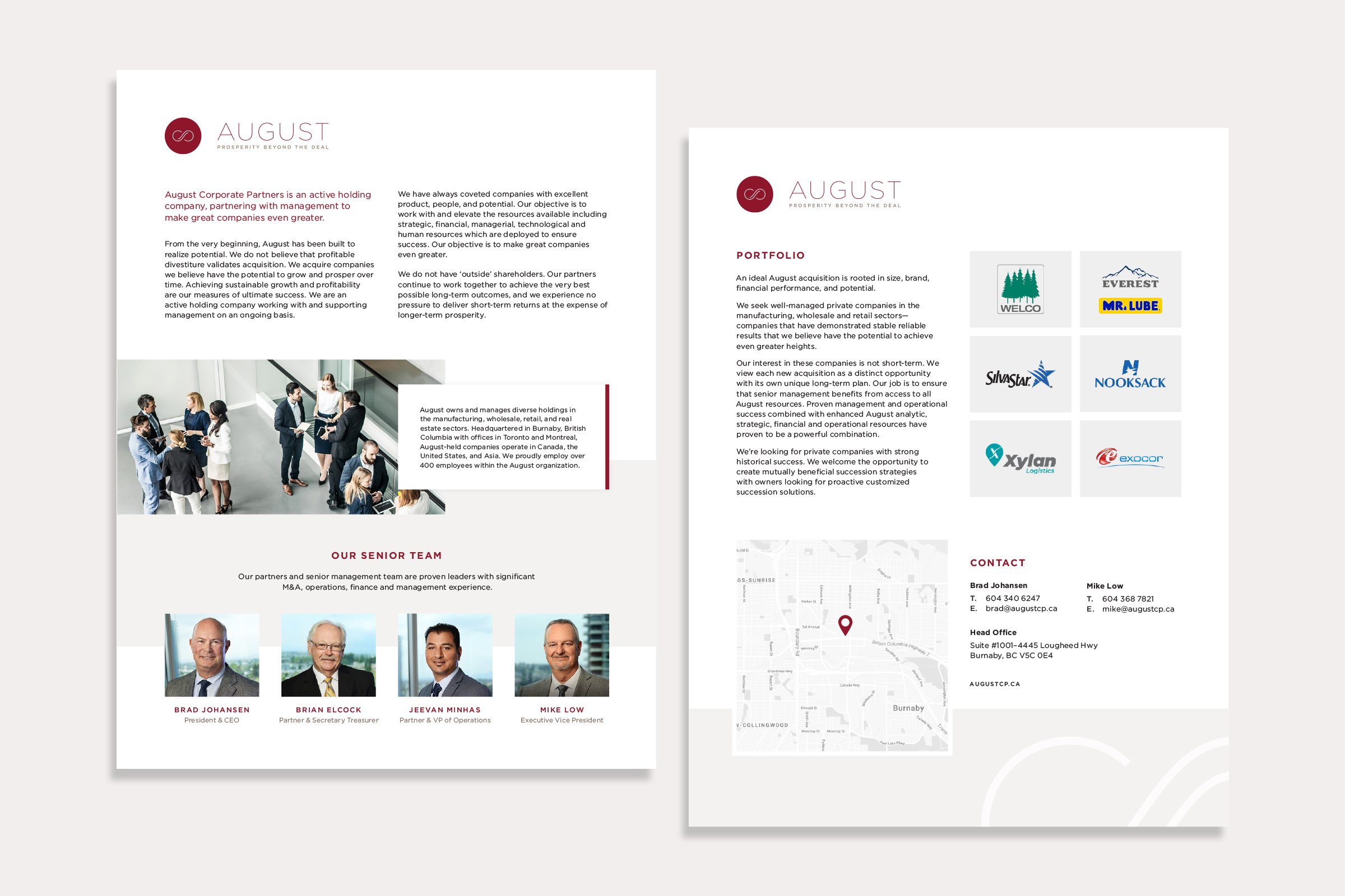 August is an active holding company with a diverse portfolio spanning manufacturing, wholesale, retail, and real estate. Distinct in its long-term, hands-on approach, August works closely with its companies to support sustained growth well beyond acquisition. The brand required a visual identity that reflected this commitment—one that conveyed dependability, integrity, and longevity.