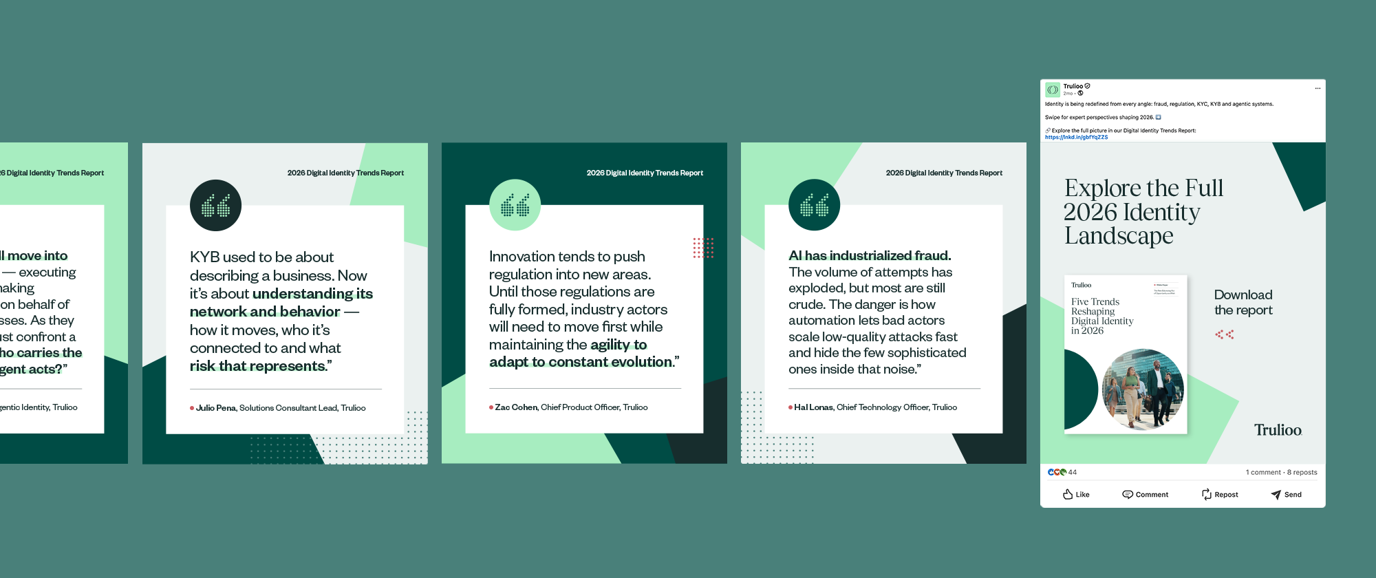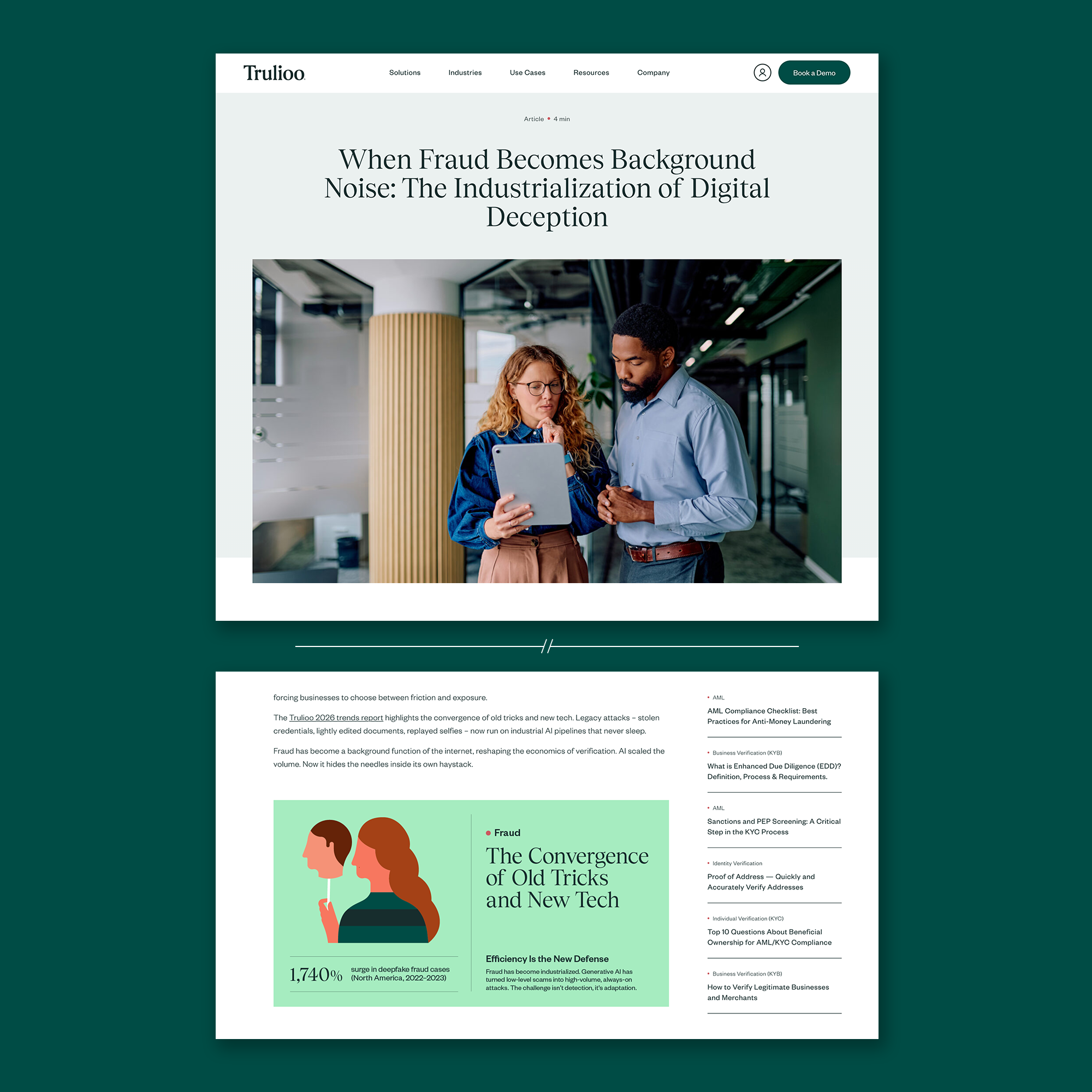 The Identity Trends campaign is an annual thought leadership initiative at Trulioo, highlighting five key trends shaping the identity and fraud landscape in the year ahead. By 2026, the campaign was entering its third year, with mounting pressure to evolve the creative while maintaining brand consistency.