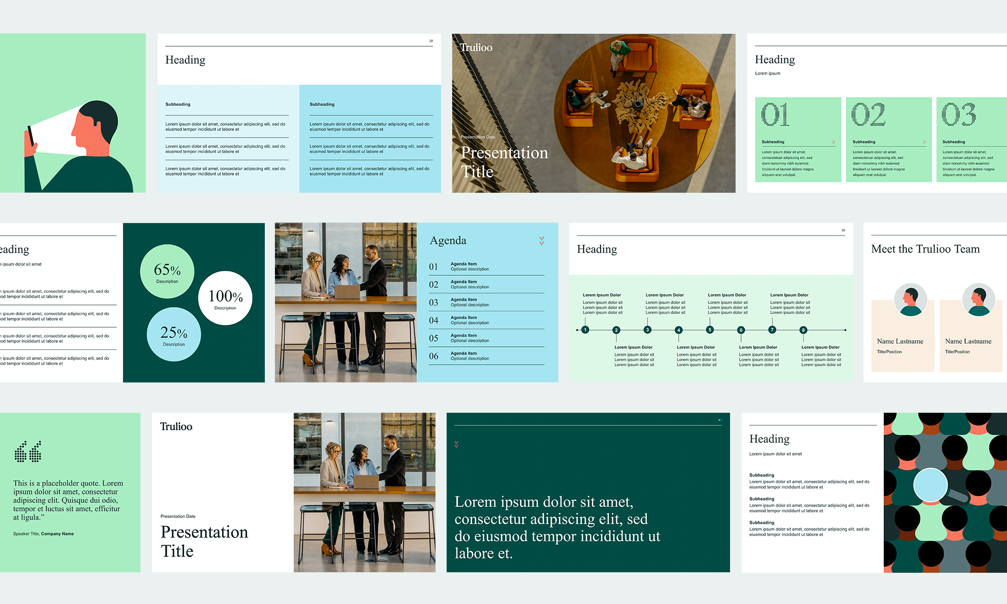 In support of scale and consistency, I create and maintain Trulioo’s centralized brand library and suite of company templates, including presentation decks used widely across both internal and external communications. By establishing a self-serve model with flexible layouts and reusable assets, I enable teams across the organization to build polished, on-brand materials independently, reducing design bottlenecks while maintaining a high standard of visual quality.